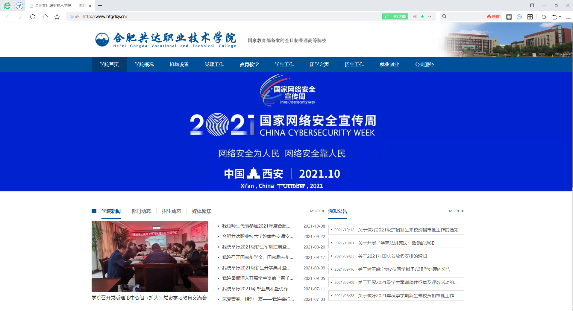 为宣传国家网络安全宣传周“网络安全为人民,网络安全靠人民”的活动,根据安徽省教育厅下发的《关于组织开展2021年网络安全宣传周活动的通知》文件精神及相关要求 ,我院于10月11日启动校园网络安全宣传周活动。本次活动以“网络安全为人民,网络安全靠人民”为主题,旨在广大青少年学生中普及网络安全知识,全面提高青少年学生网络素质和自我保护意识,以及对网络安全问题甄别的能力,营造网络安全人人有责、人人参与的良好氛围。